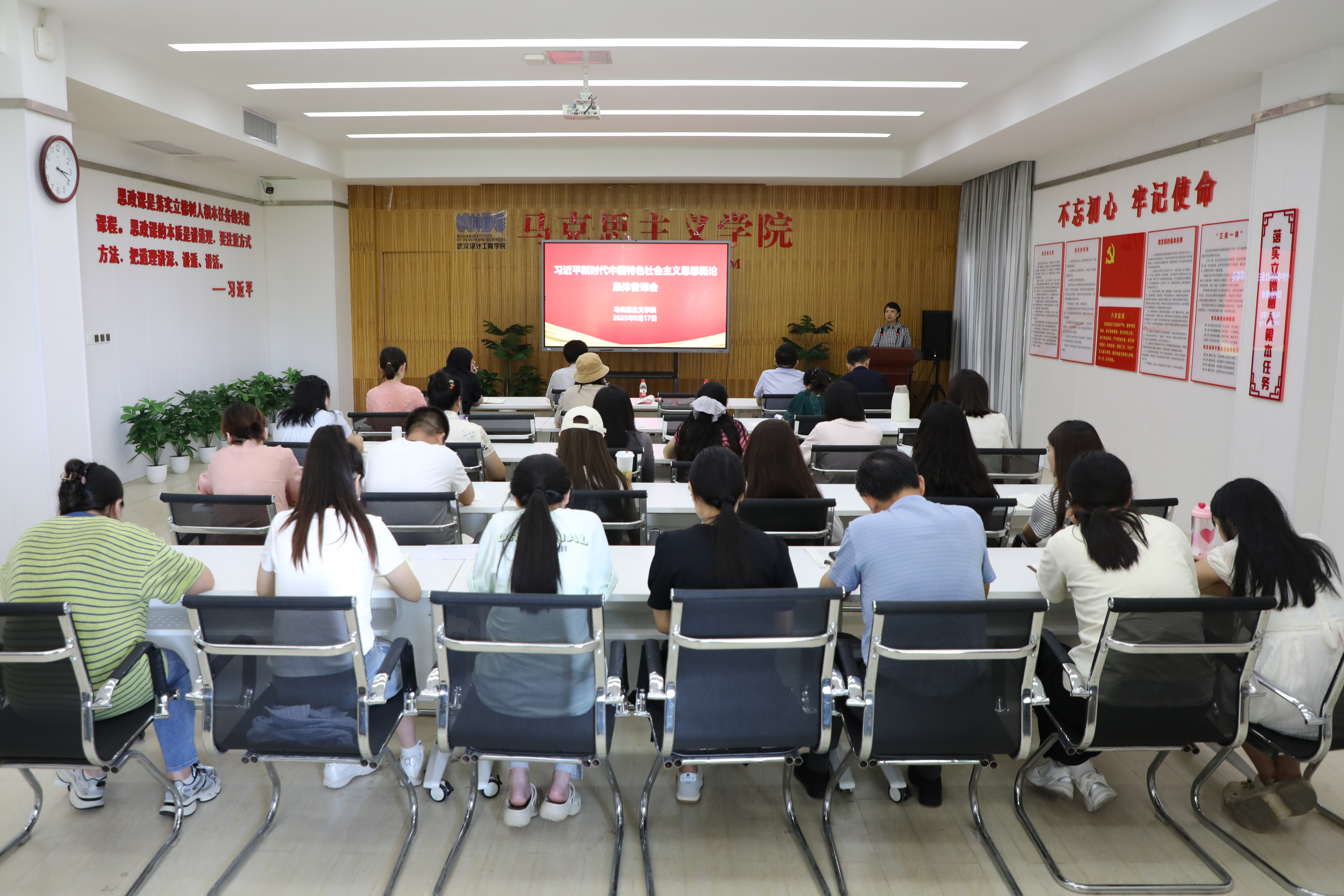 本网讯(通讯员 袁向旸)9月17日下午,学校党委书记王长华参加伟德BETVLCTOR《习近平新时代中国特色社会主义思想概论》集体备课会,听取授课教师代表说课展示,并就学好用好讲好思政课提出具体要求。伟德BETVLCTOR全体教师参加备课会。