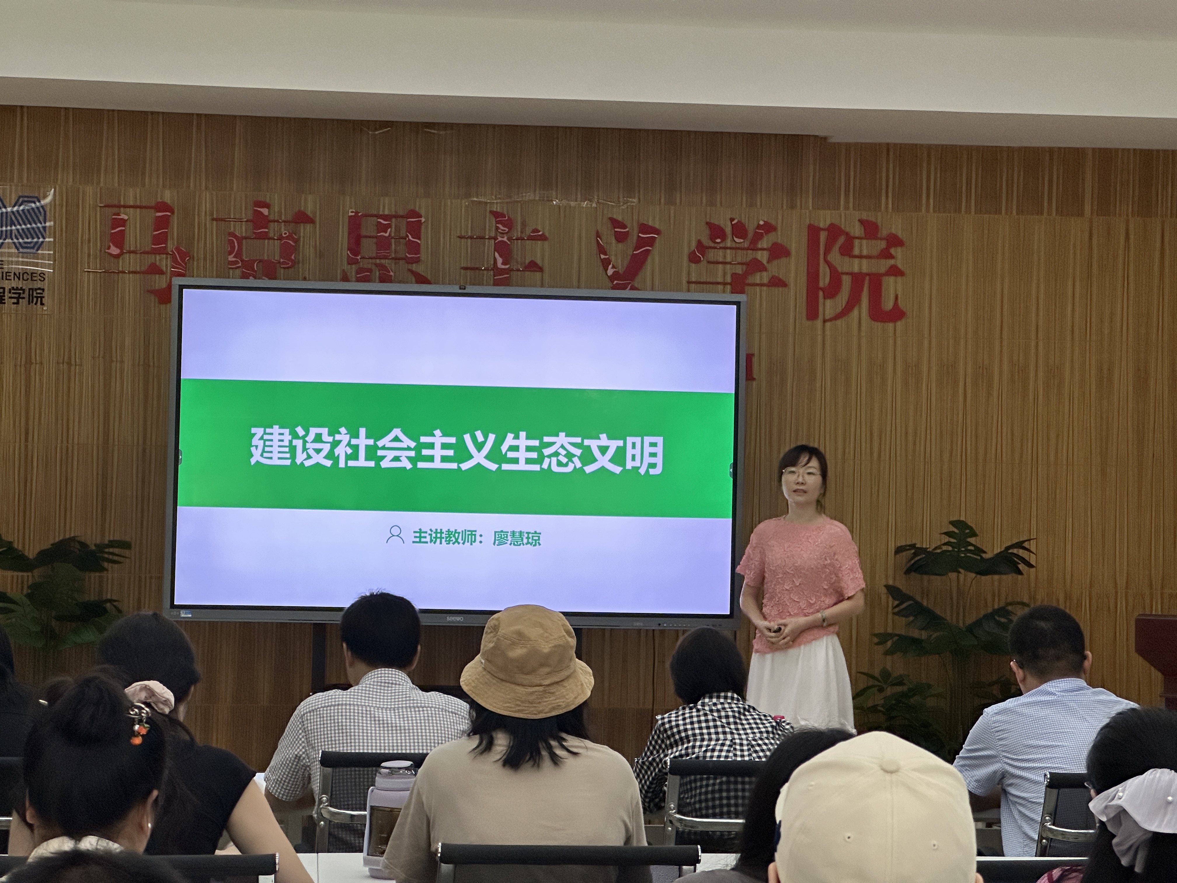 此次集体备课会聚焦《习近平新时代中国特色社会主义思想概论》课程。备课会上,该课程授课教师廖慧琼围绕“建设社会主义生态文明”这一主题,进行备课说课展示。她从教学分析、教学策略、教学过程及教学反思四个维度,系统梳理了课程设计的理论依据与实践路径,生动阐释习近平生态文明思想的科学内涵与时代价值。同时结合生动的案例和最新的政策动态,介绍了如何面向不同专业的学生,开展分众化教学的举措。与会教师围绕廖慧琼老师的说课设计展开了热烈的交流与讨论。
